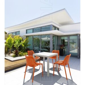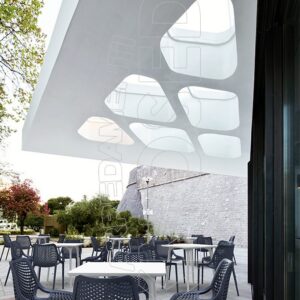 - Sedia prodotta con una singola iniezione di polipropilene rinforzato con fibra di vetro ottenuto mediante l'ultima generazione della tecnologia air moulding con toni neutri. Per uso interno ed esterno.