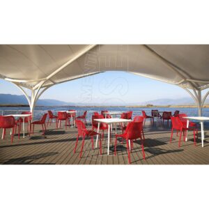 - Sedia impilabile per uso interno ed esterno in Polipropilene Rinforzato con Fibra di Vetro. Resistente al graffio, resistente ai raggi UV.