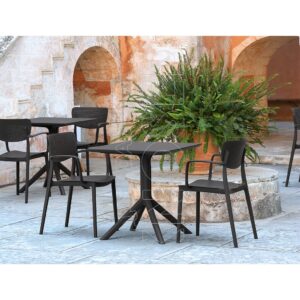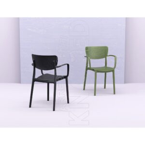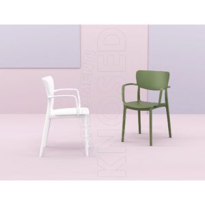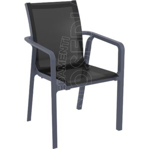- Sedia impilabile con braccioli , in polipropilene rinforzato con fibra di vetro - resistente ai graffi e raggi UV Per uso interno ed esterno