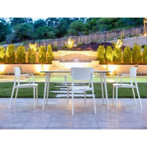 - La sedia Lucina è prodotta con un'unica iniezione di polipropilene rinforzato con fibra di vetro. Per uso interno ed esterno