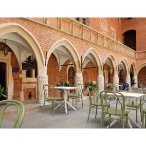 - Sedia impilabile con struttura in metallo verniciata a polveri, inalterabile agli agenti atmosferici.