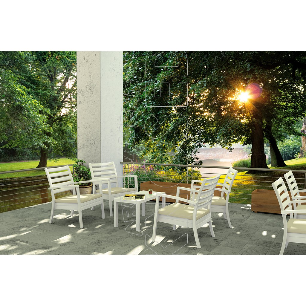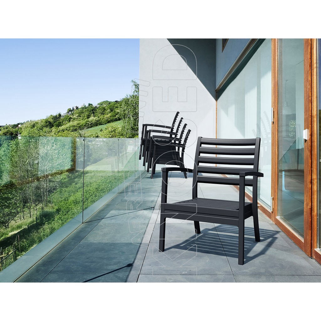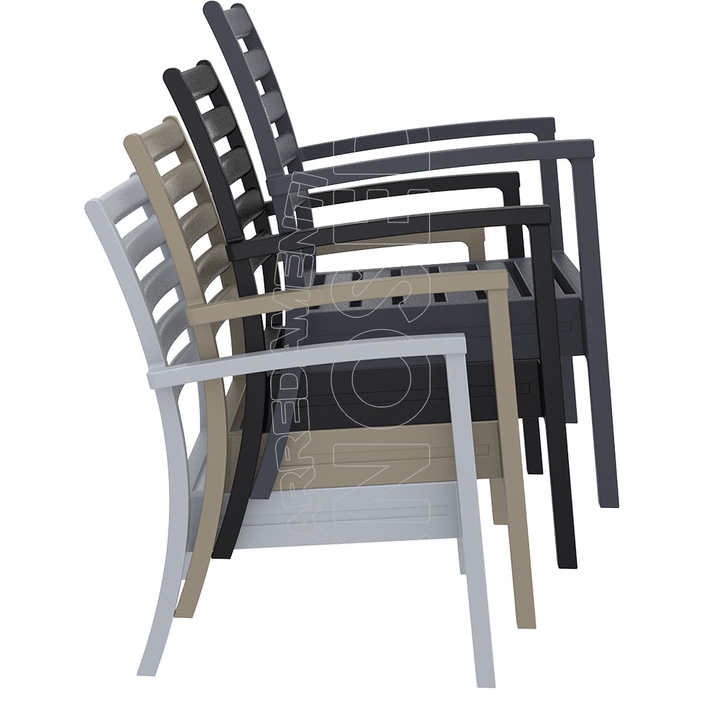 Poltrona impilabile prodotta in polipropilene rinforzato, con o senza cuscino e piedini antiscivolo