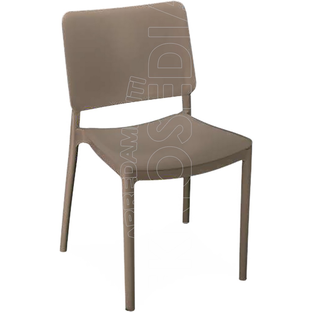 Sedia impilabile per uso interno ed esterno interamente in polipropilene rinforzata con Fibra di Vetro. Tappi antiscivolo. Resistente al graffio, ai raggi UV, totalmente waterproof.