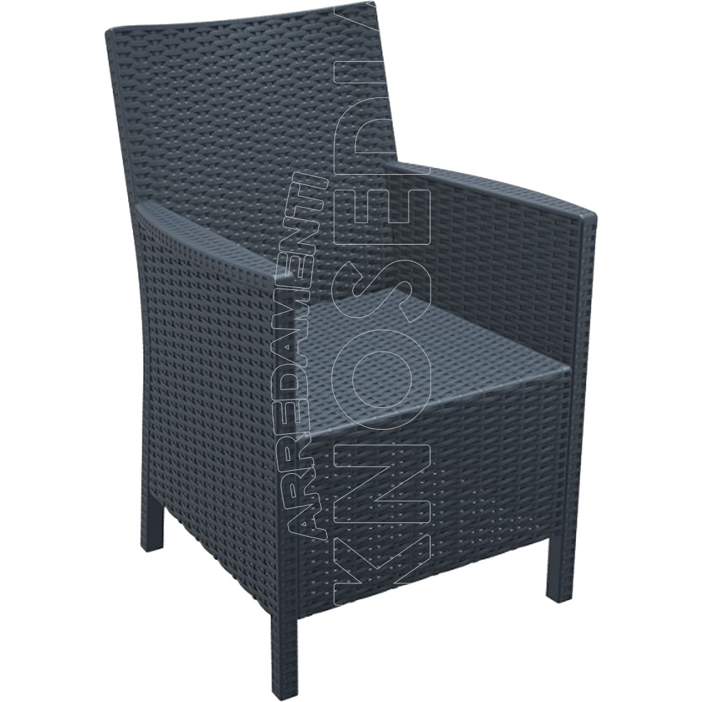 Set da salotto in polipropilene stampato rattan, Smontato – Altamente indicato per arredare con eleganza e gusto i dehors o spazi all’aperto di Bar, Ristoranti, Alberghi, Stabilimenti balneari. Per uso interno e esterno.