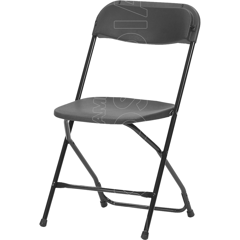 Sedia pieghevole adatta all’uso in spazi pubblici, seduta e schienale in polietilene ad alta densità, telaio in acciaio verniciato a polveri.