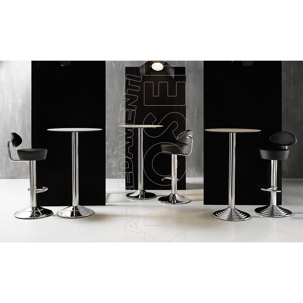 108 cm versione con poggiapiedi in verniciatura nero bucciato o inox cromato