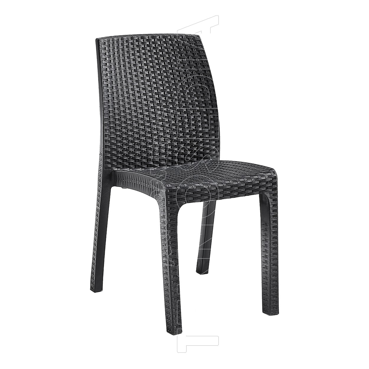 Sedia impilabile per uso inteno ed esterno in polipropilene motivo finto Rattan. Resistente al graffio, ai raggi UV, totalmente waterproof.