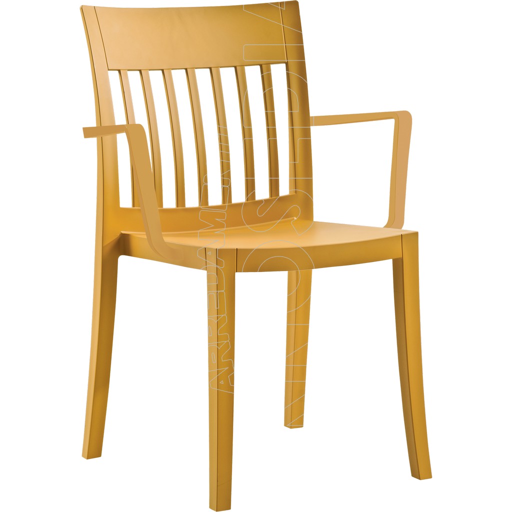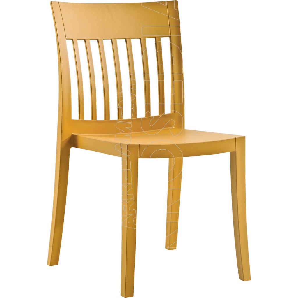 Sedia impilabile in polipropilene rinforzato con fibra di vetro e schienale con doghe verticali. Design semplice che si Adatta a molteplici ambienti: caffè, ristoranti, hotels, bar. Per uso interno ed esterno
