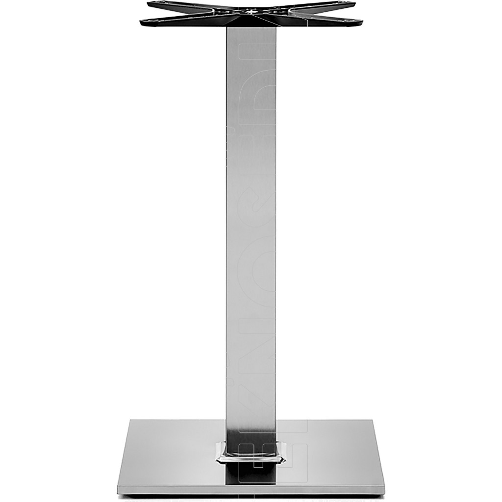 Base quadrata in acciaio inox a finitura satinata con colonna a sezione quadrata in acciao inox, scalino quadrato tra la base e la colonna e crociera Star in alluminio. Adatta per essere abbinata a piani di diverse dimensioni e materiali. La base Irma è nata per soddisfare le esigenze di ambienti polivalenti come Bar, Ristoranti, Pizzerie, Caffetterie, Enoteche, Taverne, Osterie, Pub.
