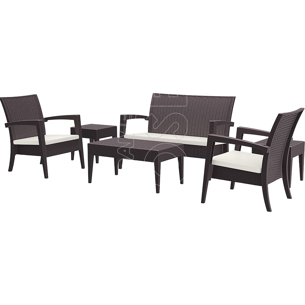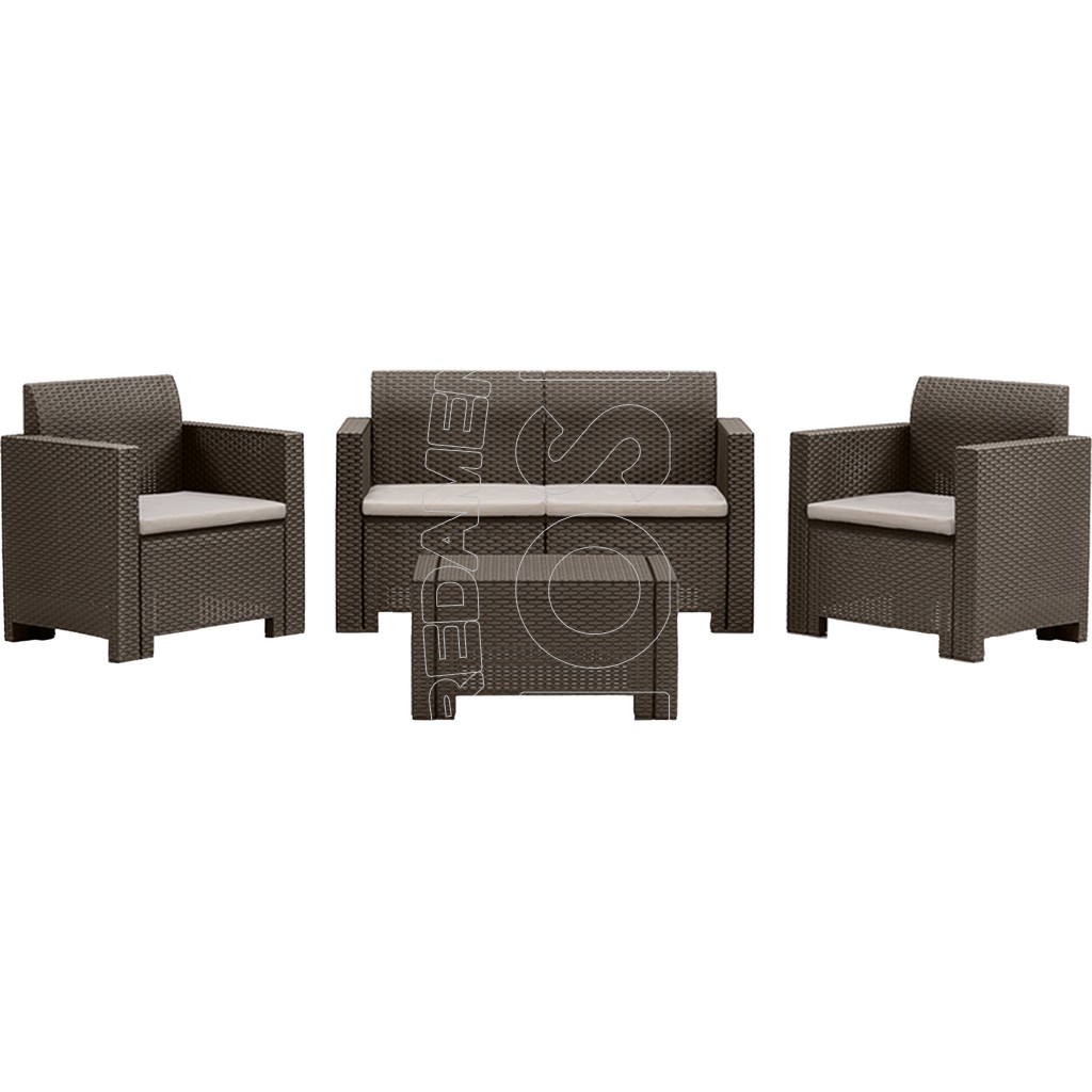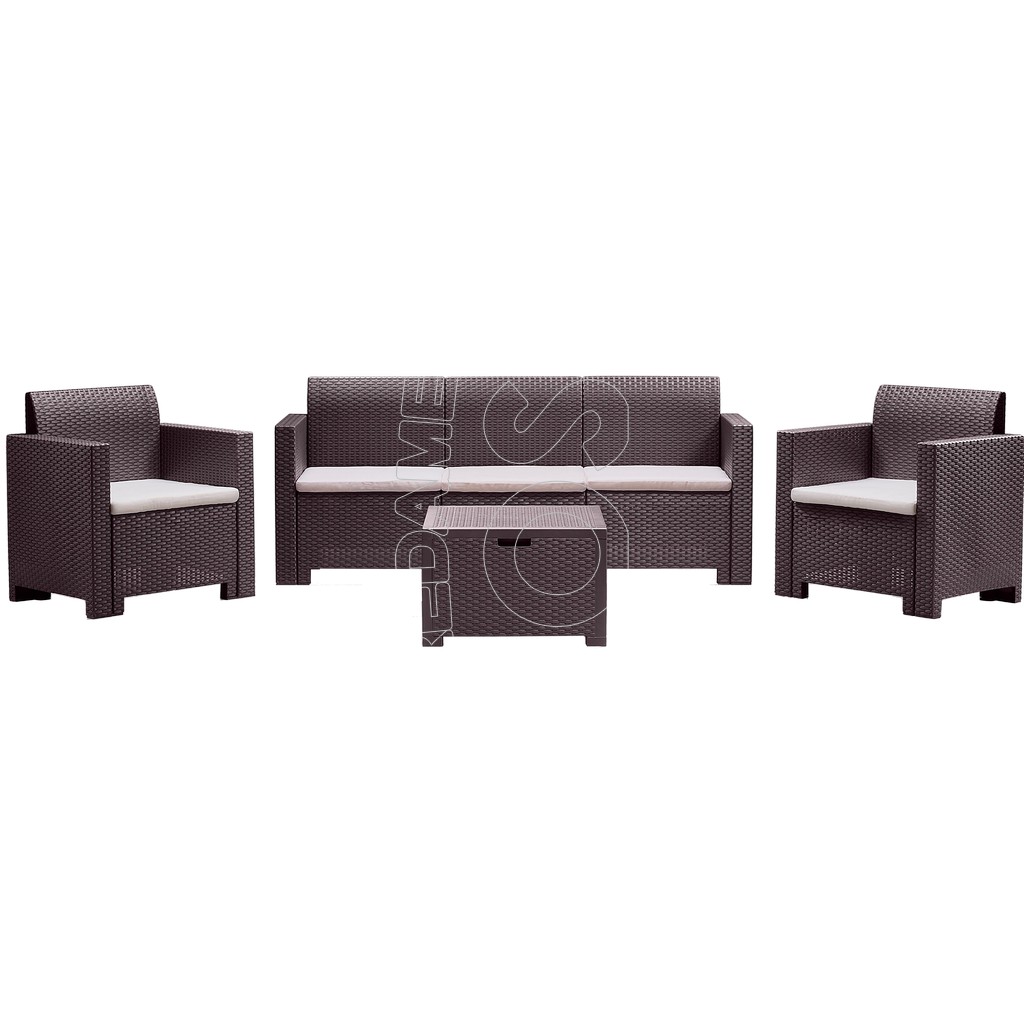 Salotto in prolipropilene stampato motivo rattan per uso inteno ed esterno in polipropilene. Estremamente solido, robusto, resistente al graffio, ai raggi UV, totalmente waterproof.