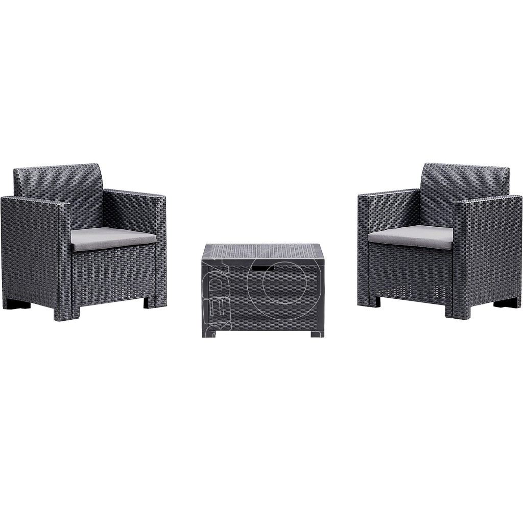 Salotto in prolipropilene stampato motivo rattan per uso inteno ed esterno in polipropilene. Estremamente solido, robusto, resistente al graffio, ai raggi UV, totalmente waterproof.