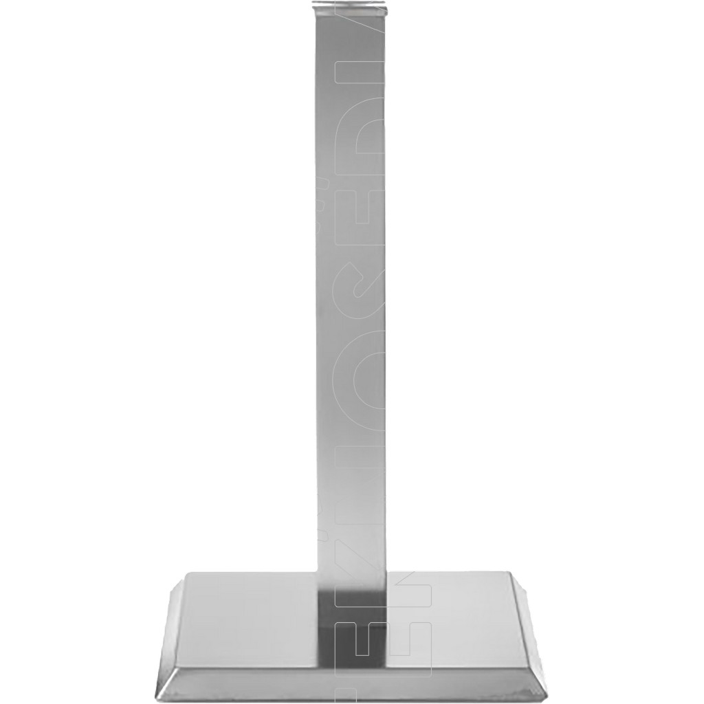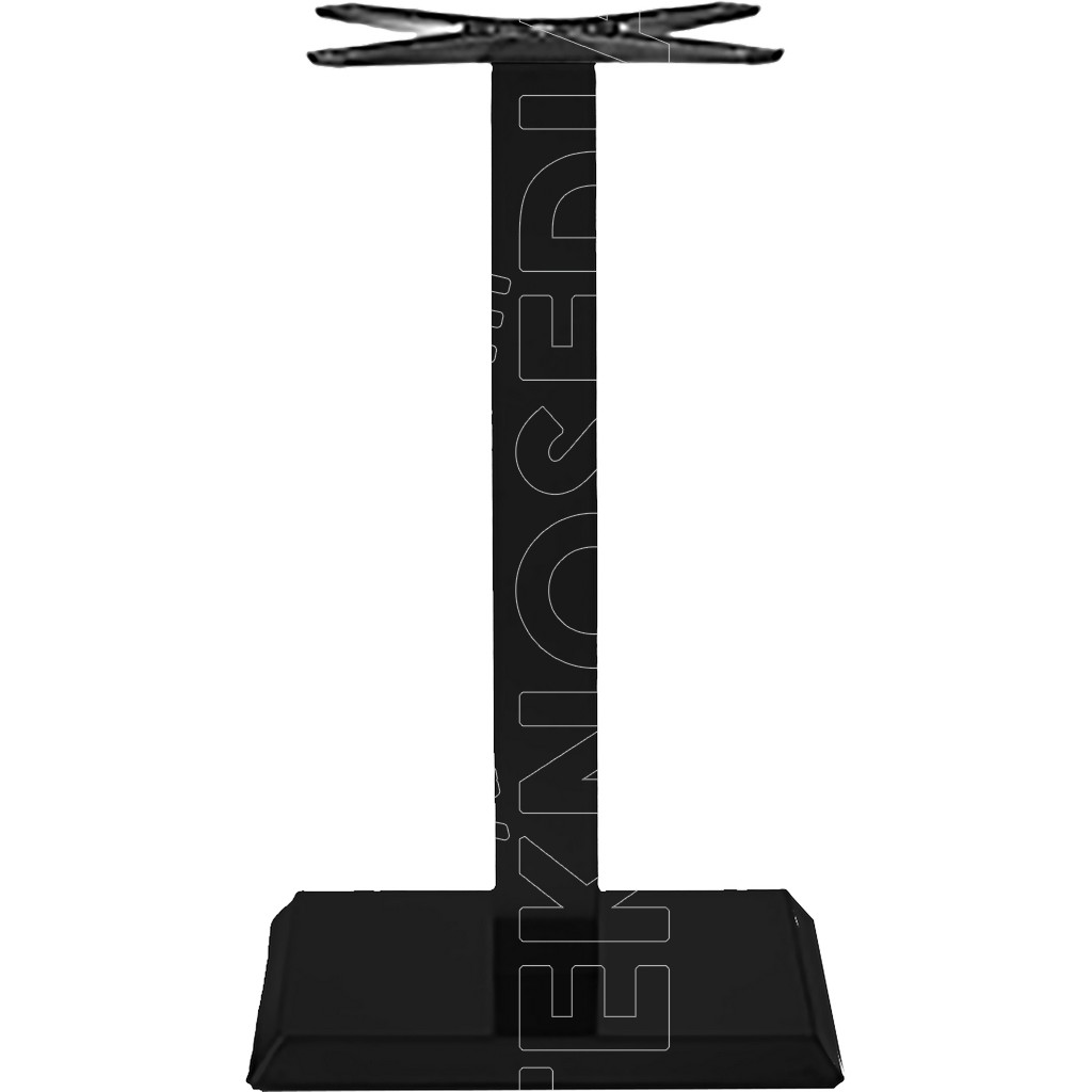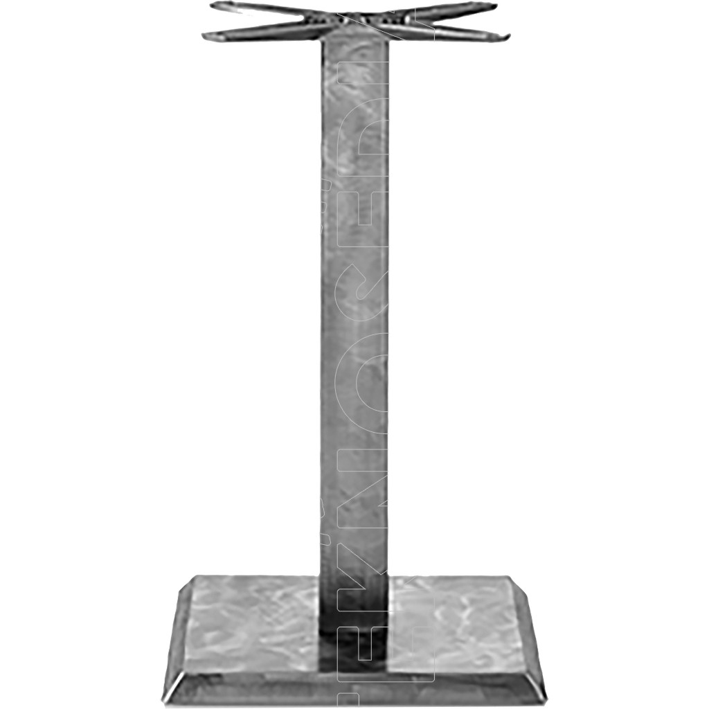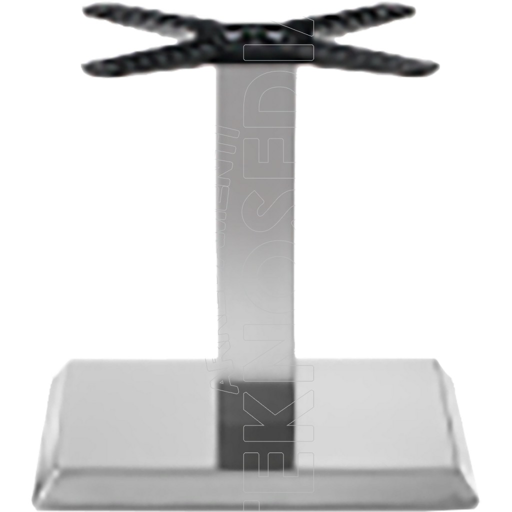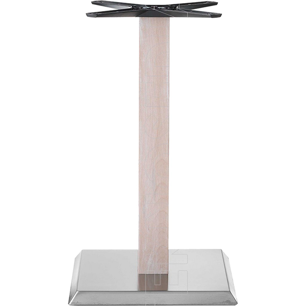 Base in acciaio inox composta da zavorra quadrata in fusione di ghisa con copertura in acciaio inox e colonna in acciaio o legno di faggio a sezione quadrata, crociera star in alluminio