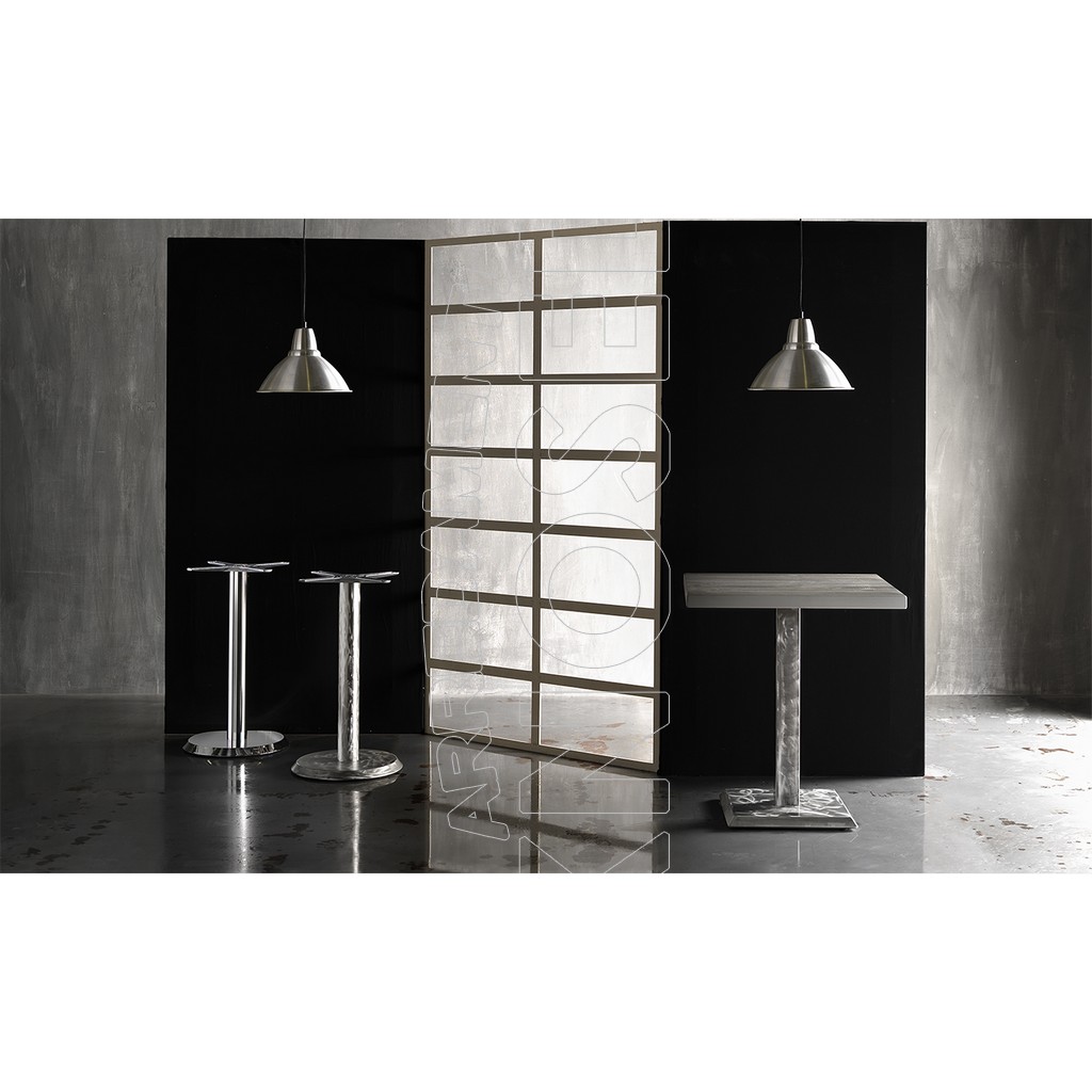 Base tonda in acciaio inox con colonna in acciaio o legno di faggio a sezione rotonda , crociera Star in alluminio. Adatta per essere abbinata a piani di diverse dimensioni e materiali. La base Lisa è nata per soddisfare le esigenze di ambienti polivalenti come Bar, Ristoranti, Pizzerie, Caffetterie, Enoteche, Taverne, Osterie, Pub.