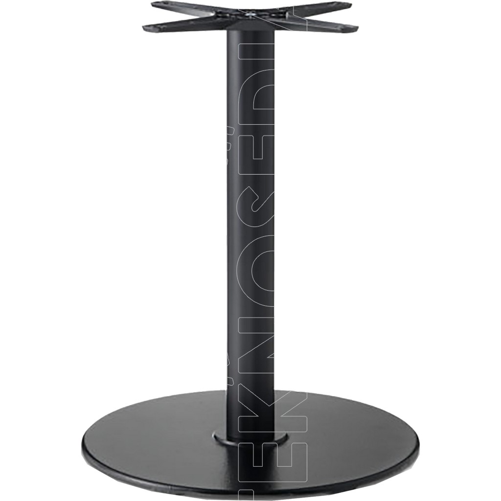Base realizzata interamente in fusione di ghisa a 3 o 4 razze, crociera star in alluminio o piastra , disponibile in 2 altezze per piani tondi o quadrati.